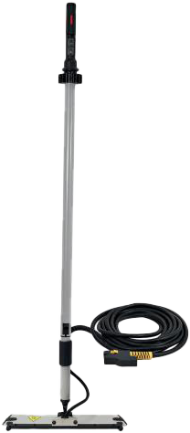 It's lightweight and highly manoeuvrable, equipped with a 5/10m hose, a telescopic tube, and 40cm cloths made of cotton/polyester with an optional microfiber variant.